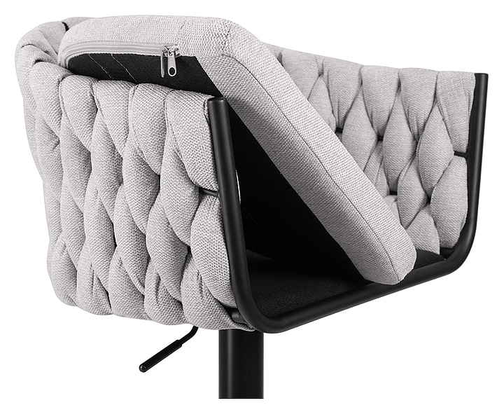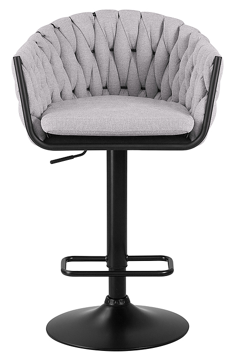 Барный стул DOBRIN 9690-LM-N LEON предназначен для обустройства барной зоны в кухнях, столовых, гостиных, а также в кафе и ресторанах. Модель оснащена дисковым основанием, подлокотниками, мягким вращающимся сиденьем фигурной формы, механизмом регулировки высоты, мягкой спинкой и подставкой для ног. Каркас и основание выполнены из металла, обивка - из текстиля. Особенности: