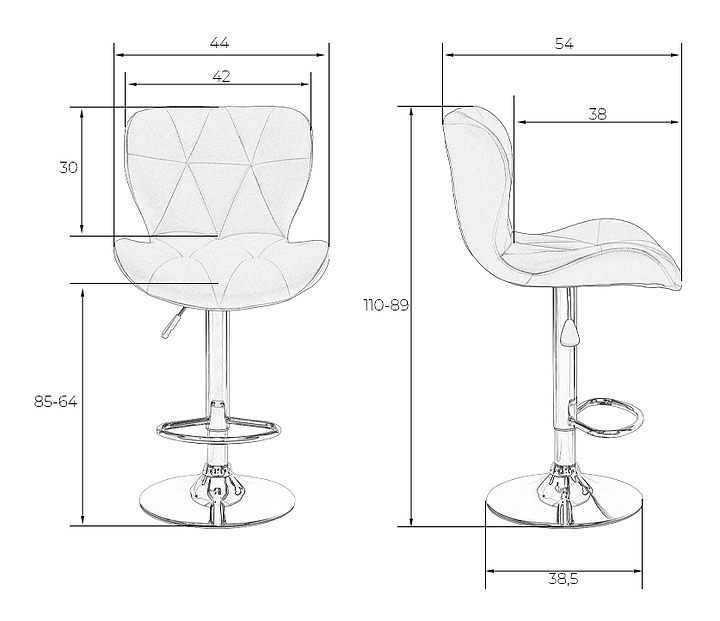 Высота от пола до сиденья от 640 до 850 мм
