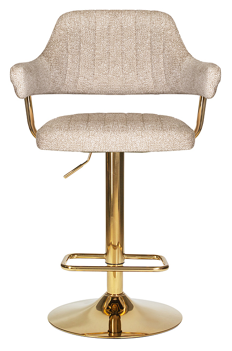 Барный стул DOBRIN 5019-LM-N CHARLY GOLD предназначен для обустройства барной зоны в кухнях, столовых, гостиных, а также в кафе и ресторанах. Модель оснащена мягким вращающимся сиденьем фигурной формы, мягкой эргономичной спинкой, подлокотниками, механизмом регулировки высоты и основанием в виде диска. Каркас и основание выполнены из металла, обивка - из твида.