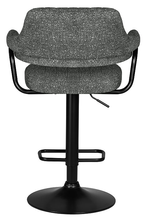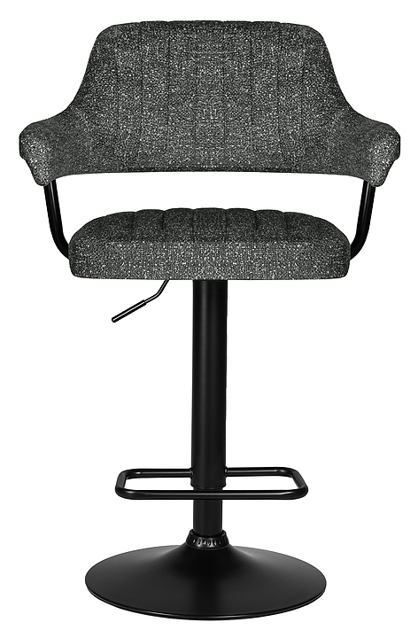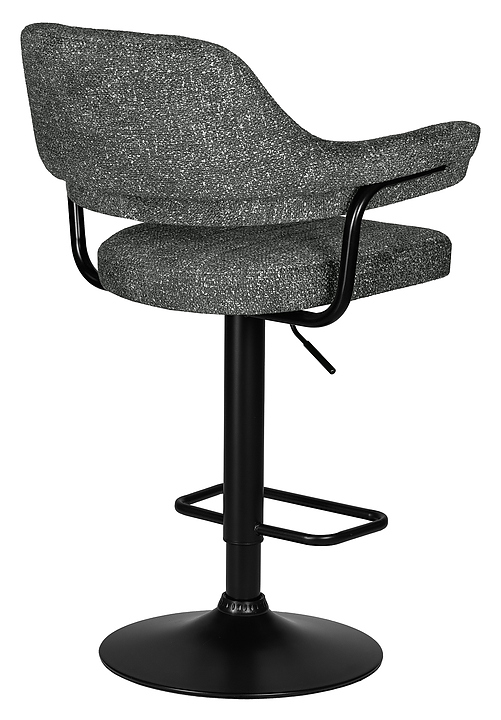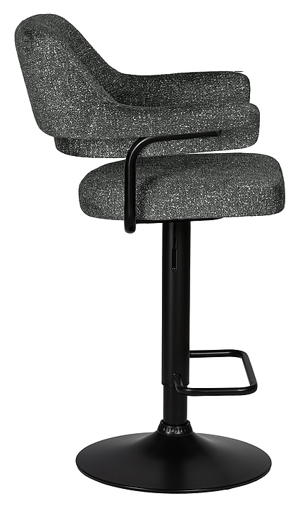 Барный стул DOBRIN 5019-LM-N CHARLY BLACK предназначен для обустройства барной зоны в кухнях, столовых, гостиных, а также в кафе и ресторанах. Модель оснащена мягким вращающимся сиденьем фигурной формы, мягкой эргономичной спинкой, подлокотниками, механизмом регулировки высоты и основанием в виде диска. Каркас выполнен из комбинированного материала, основание - из металла, обивка - из твида.