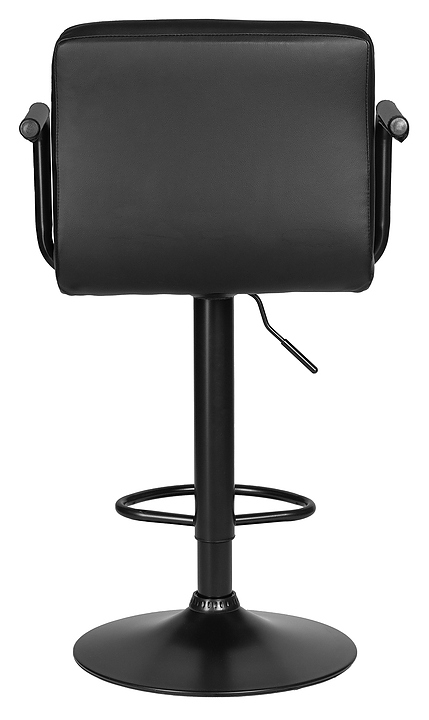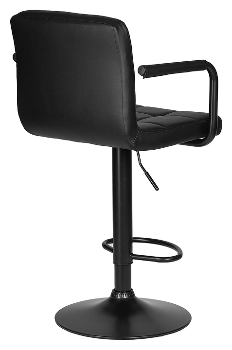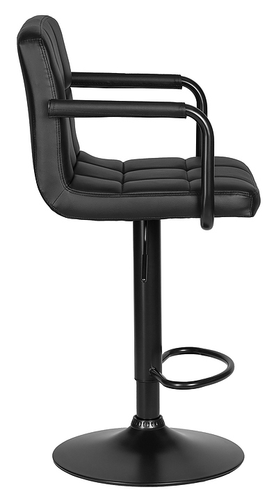 Барный стул DOBRIN 5011-LM-N KRUGER ARM BLACK предназначен для обустройства барной зоны в кухнях, столовых, гостиных, а также в кафе и ресторанах. Модель оснащена мягким вращающимся сиденьем квадратной формы, подлокотниками с чехлами, механизмом регулировки высоты, мягкой спинкой, дисковым основанием и подставкой для ног. Каркас выполнен из фанеры, основание - из металла, обивка - из экокожи.