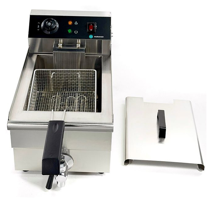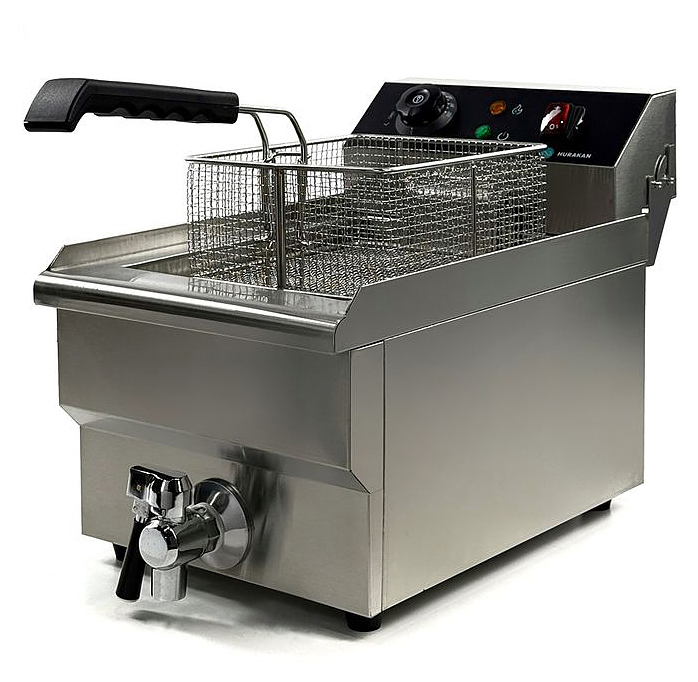 Фритюрница Hurakan HKN-FT10N предназначена для приготовления широкого спектра блюд в большом объеме разогретого до определенной температуры масла или жира на предприятиях общественного питания и торговли. Модель оснащена электромеханической системой управления, регулировкой температуры, холодной зоной и краном для слива масла. Корпус выполнен из нержавеющей стали. В комплект поставки входят корзина и крышка. Дополнительные характеристики:
