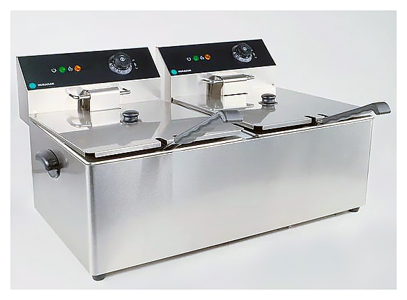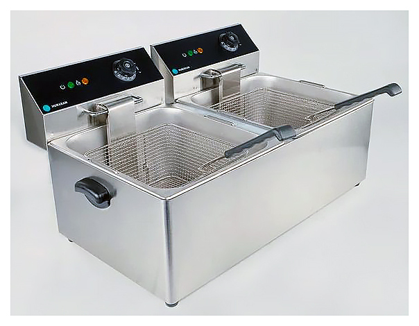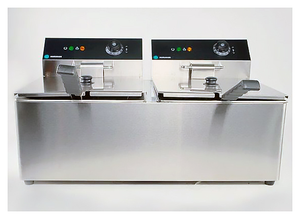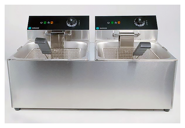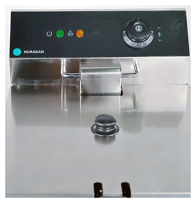 Фритюрница Hurakan HKN-FT66N предназначена для приготовления широкого спектра блюд в в разогретом до определенной температуры большом объеме масла или жира на предприятиях общественного питания и торговли. Модель оснащена электромеханической системой управления и регулировкой температуры. Корпус выполнен из нержавеющей стали. В комплект поставки входят 2 корзины с 2 крышками. Дополнительные характеристики:
