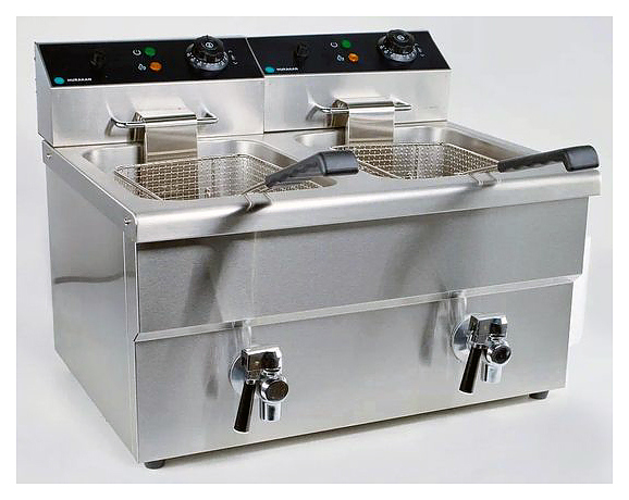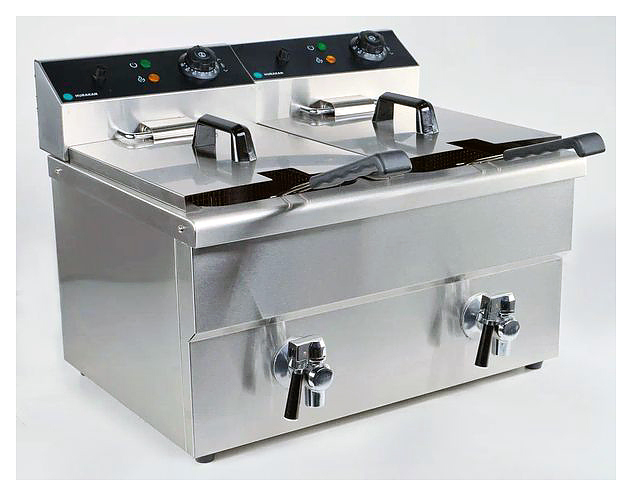 Фритюрница Hurakan HKN-FT1212N предназначена для приготовления широкого спектра блюд в большом объеме масла или жира на предприятиях общественного питания и торговли. Модель оснащена электромеханической системой управления, регулировкой температуры, холодной зоной и кранами для слива масла. Корпус выполнен из нержавеющей стали. В комплект поставки входят 2 корзины с 2 крышками. Внимание! Вилка в комплект поставки не входит и приобретается отдельно. Дополнительные характеристики:
